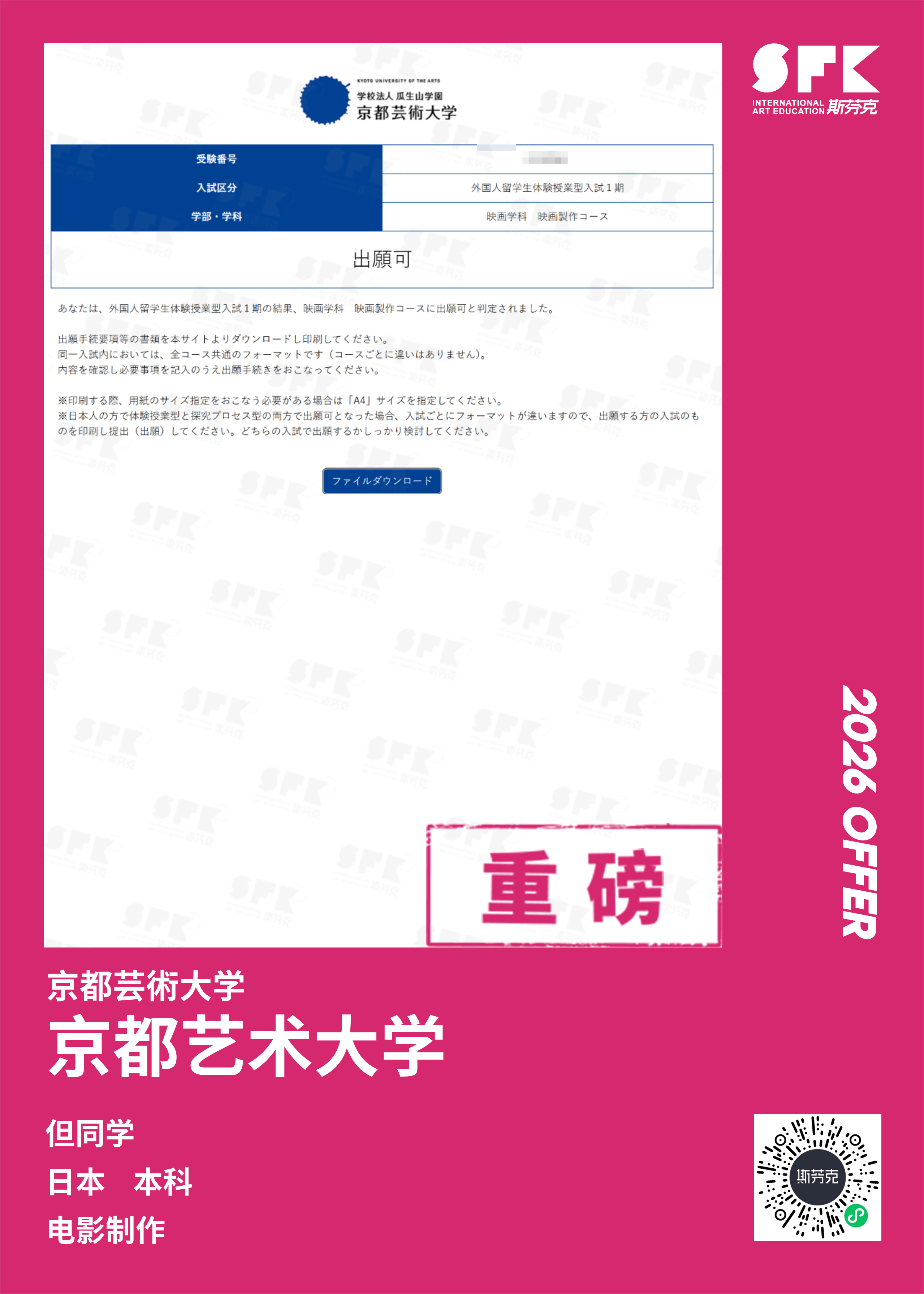 斯芬克专注艺术留学10年+,深度了解日本留学申请要求,针对中国学生特点,日本院校招生情况,定向研发全日制本科升学班,精准聚焦本科申请,性价比高,学习效果好!