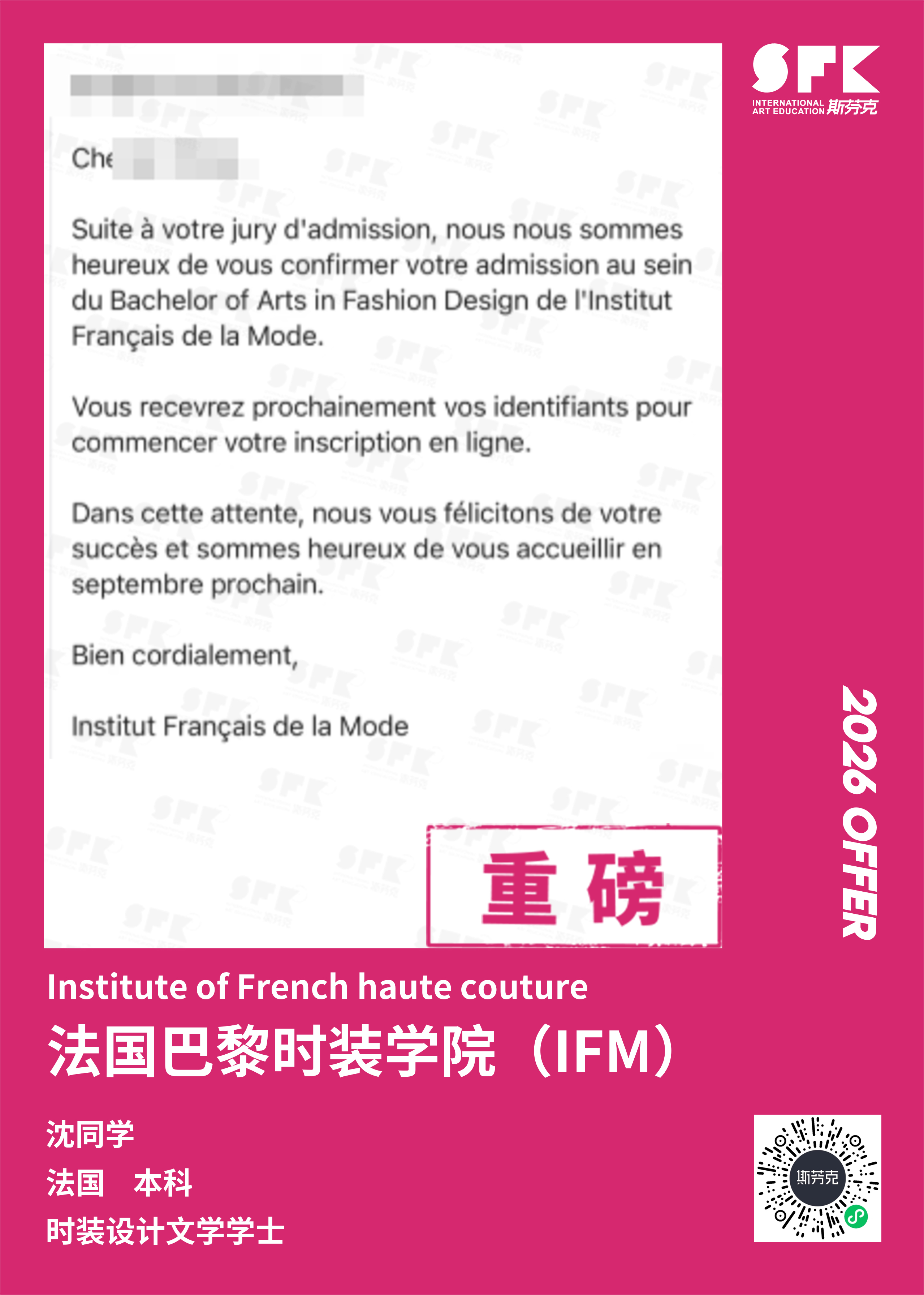 坐落在巴黎市中心著名的艺术之区。IFM是全球最优秀的艺术院校之一,专注于创新、设计和时尚产业管理,并致力于成为世界时尚教育的引领者。针对时尚产业管理,时尚设计和创意工程的名校,也是时尚界研究和专业鉴定中心。IFM 始终位于国际时尚教学机构的核心地位,也是法国名校系统即高等专业学院协会的一员。